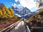 Crossing the bridge where is way to blue moon valley of Lijiang, Jade dragon snow mountain. Yunnan province, China