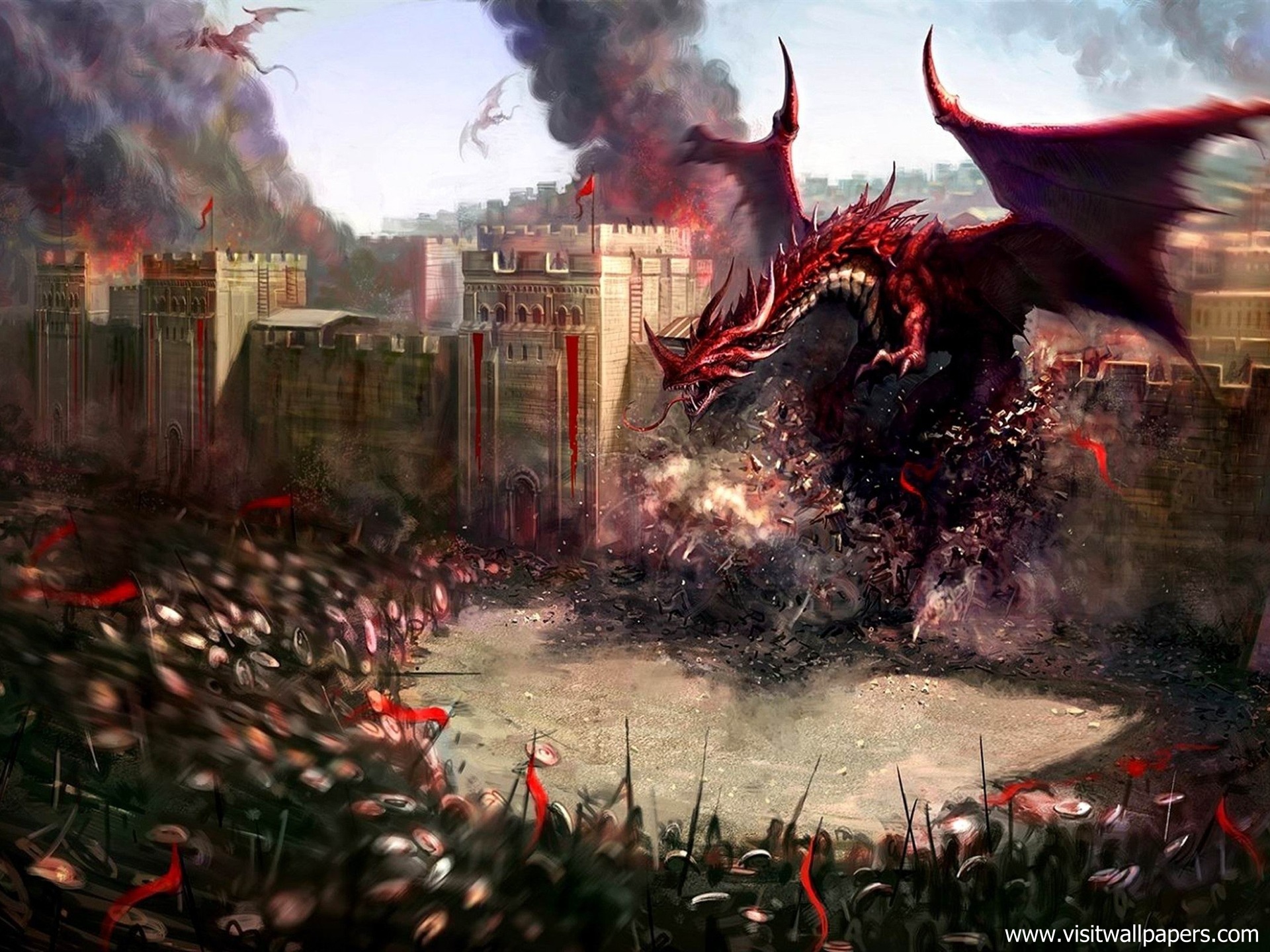 Dragon_020Dragons city wall - Fantasy design HD wallpaper
