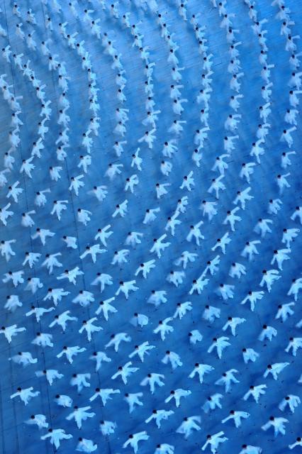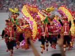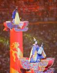 Another procession of men, in blue dress, with oars forming pictures of junks, symbolized the voyages of Zheng He.