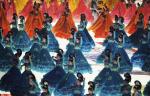 นักแสดงอีกชุดที่สวมชุดสีน้ำตาลแดงคล้ายนักรบโบราณ พร้อมด้วยการแสดงงิ้วและหุ่นละครเล็กแบบปักกิ่งก็เคลื่อนสู่สนาม พร้อมด้วยการเพิ่มลายเส้นบนผืนผ้าใบ ประกอบการบรรเลงด้วยกู่เจิ้ง (guqin)
