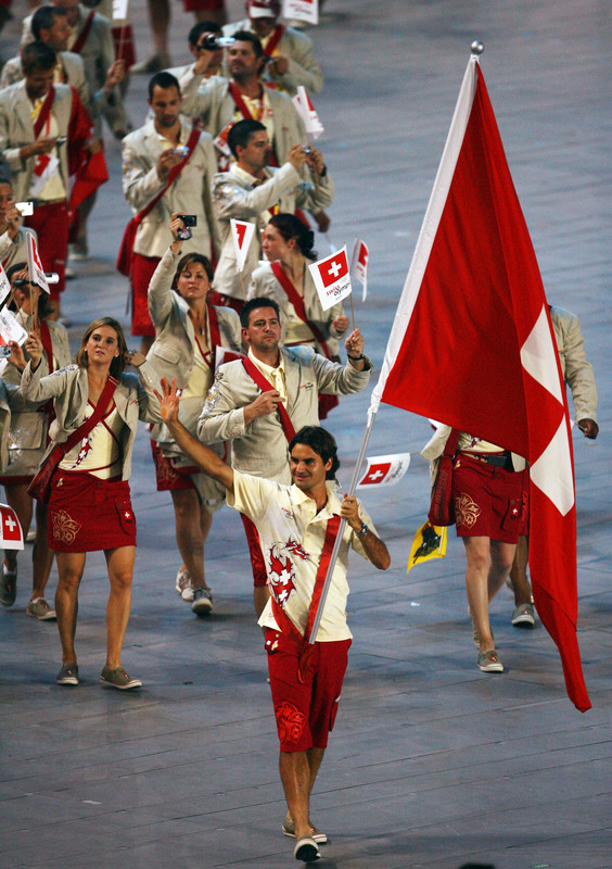 โรเจอร์ เฟเดอเรอร์ นักเทนนิสมือ 1 ของโลก ถือธงชาติสวิสเซอร์แลนด์