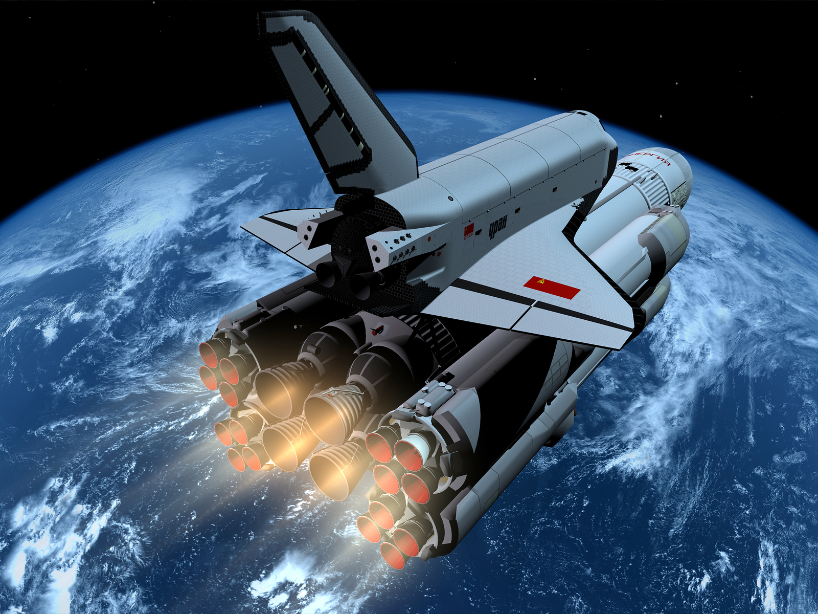 nasa_211Space shuttle launch in the open space over the Earth. Ocean and sky under space ship. Elements of this image furnished by NASA