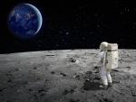 nasa_206An astronaut standing on the surface of the moon looking up to the earth on the background. Elements of this image furnished by NASA.
