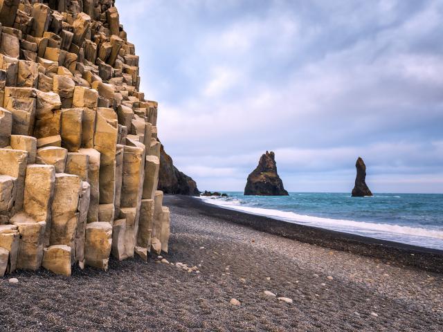 Beaches_130 Incredible view of the Black beach and troll toes. Reynisdrangar, Vik, Iceland Date: 8/6/2020 Incredible view of the Black beach and troll toes. Reynisdrangar, Vik, Iceland