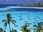 Beaches_170Palm trees over white beach on Plantation Island, Fiji, South Pacific