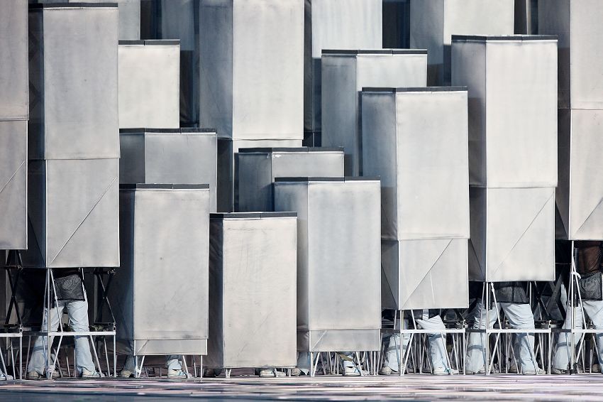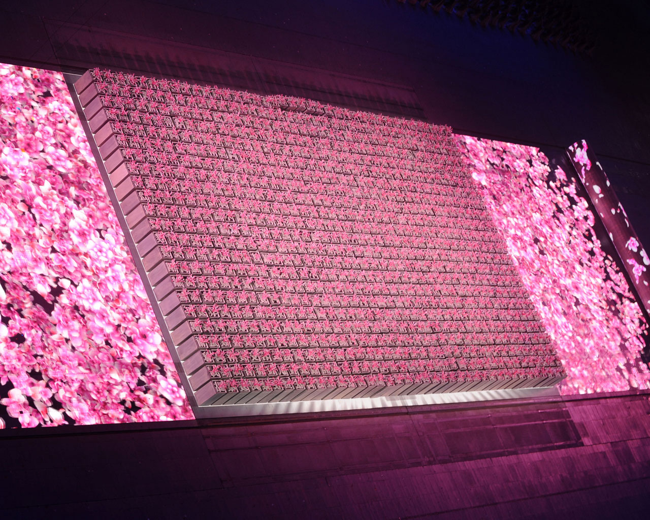 The giant scroll was then moved aside to show a fluid array of 897 movable type blocks that formed three variations of the character 和 (harmony)