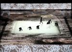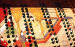 นักแสดงอีกชุดที่สวมชุดสีน้ำตาลแดงคล้ายนักรบโบราณ พร้อมด้วยการแสดงงิ้วและหุ่นละครเล็กแบบปักกิ่งก็เคลื่อนสู่สนาม พร้อมด้วยการเพิ่มลายเส้นบนผืนผ้าใบ ประกอบการบรรเลงด้วยกู่เจิ้ง (guqin)