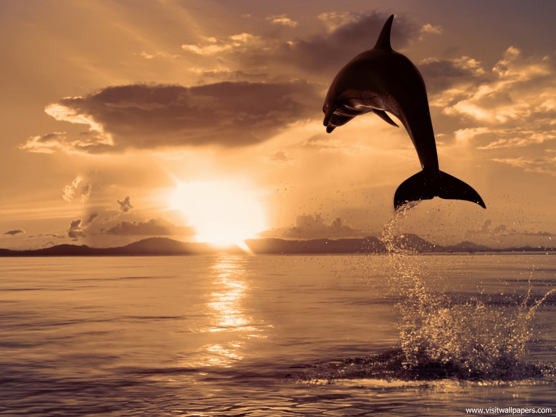 ocean-life-826Two dolphins jumping out of the water at sunrise, creating massive vortex, huge splashes, and ocean spray, the other dolphins swim on the ocean surface at lovina beach, bali island, indonesia.