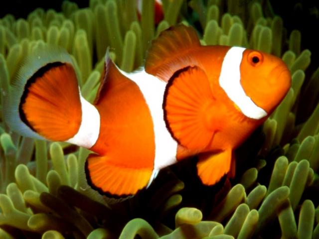 ocean-life-814A Clown Anemonefish sheltering among the tentacles of its sea anemone.