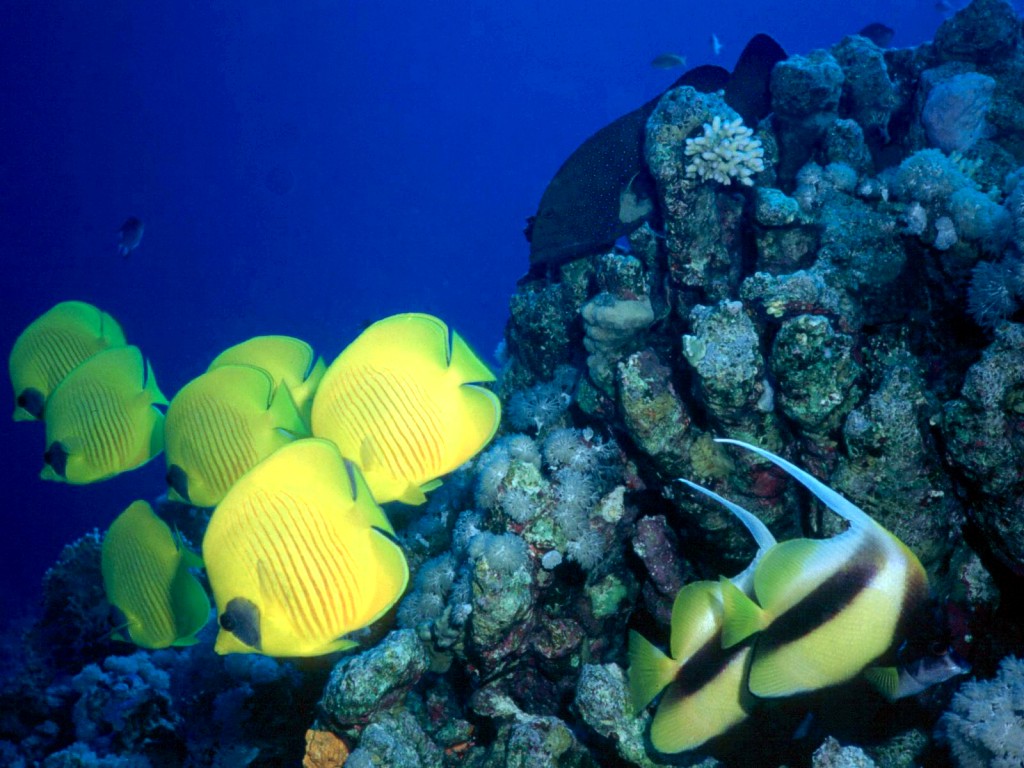 ocean-life-778Underwater coral reef scenery with colorful school of fish.