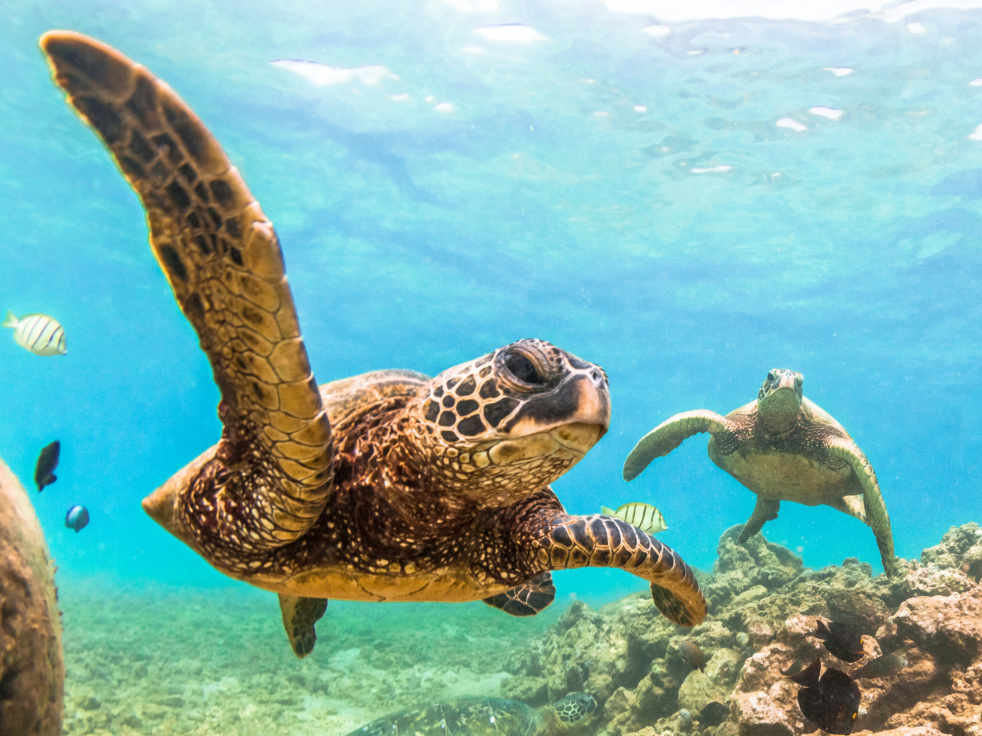 ocean-life-787Endangered hawaii Green sea turtles sail in the warm waters of the Pacific Ocean in Hawaii.