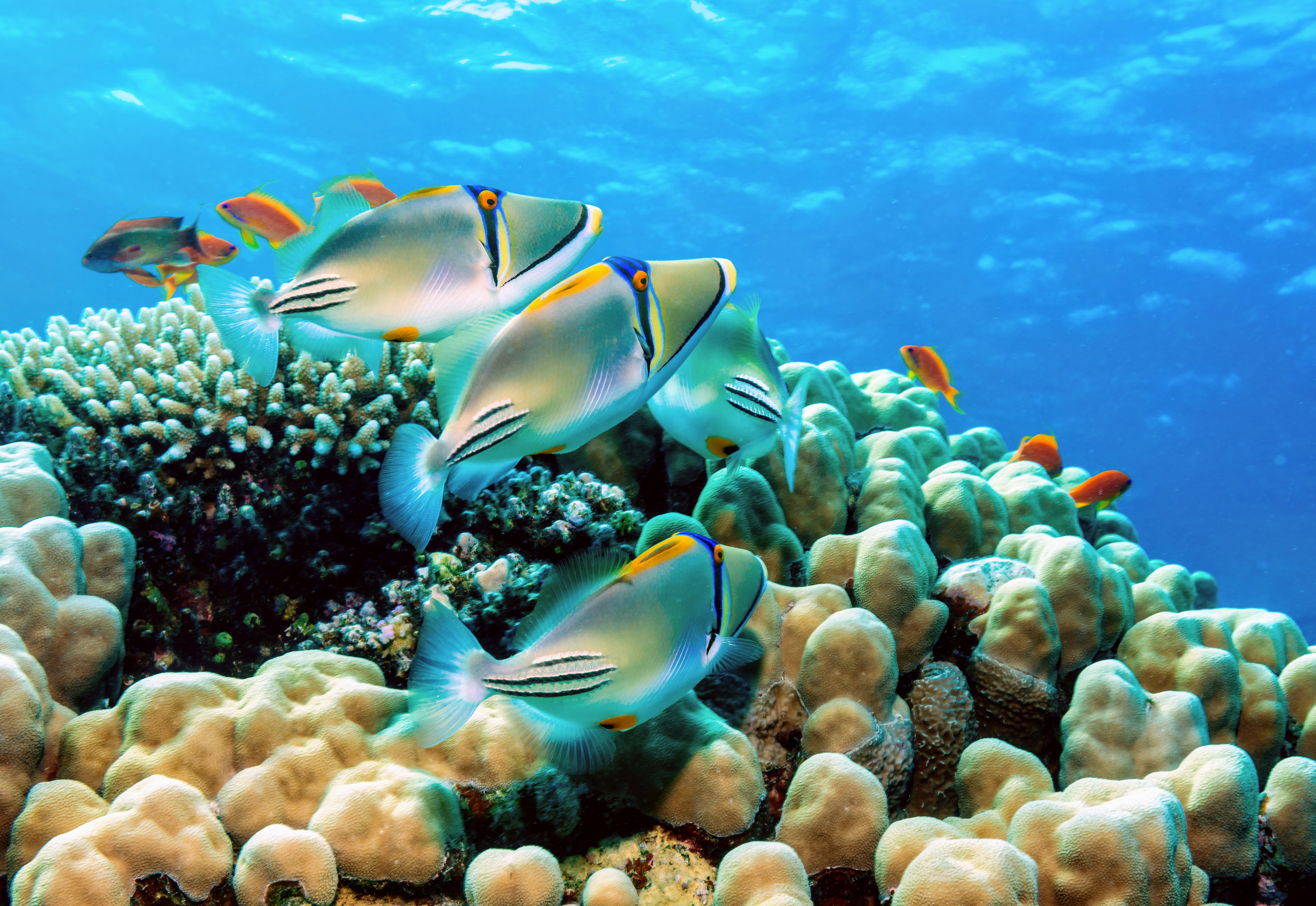ocean-life-810Group of Picasso triggerfish on a coral reef