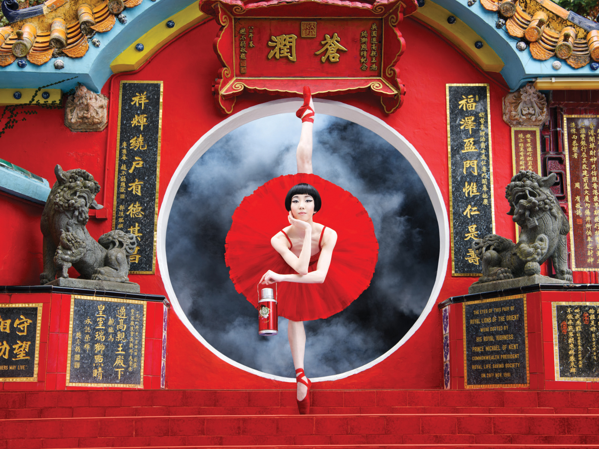 Hong_Kong_30Young woman traveler traveling into Hongkong beautiful golden teak wood pagoda at Nan Lian Garden in Hong Kong