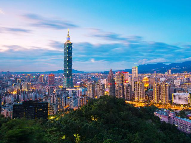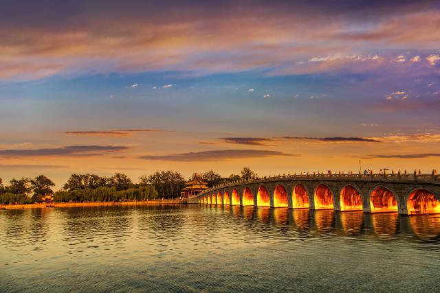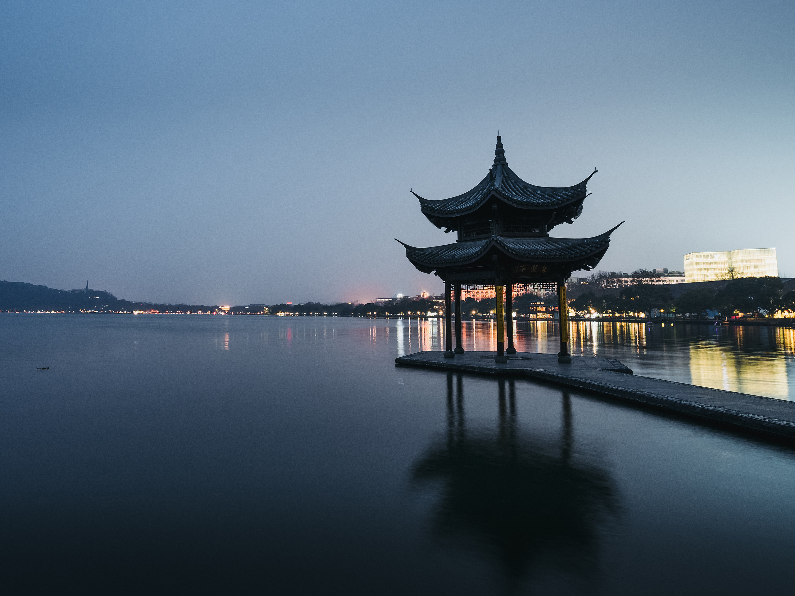 Jixian Pavilion at dusk, West Lake, Hangzhou, China
