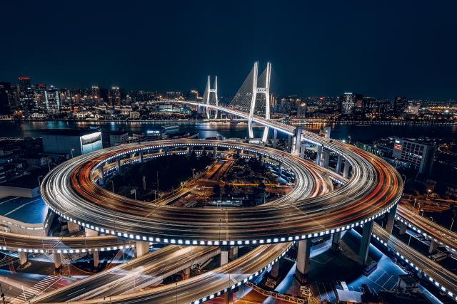 The Nanpu Bridge in Shanghai, China, sister bridge to the Yangpu Bridge, is one of the main bridges in Shanghai.