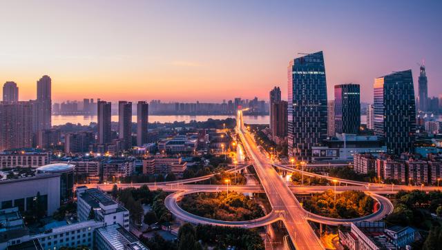 china_868Aerial photography of the modern architectural landscape of Hangzhou city at dusk.
