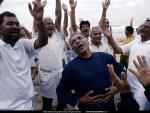 An aerial view of Batticaloa, Sri Lanka, shows a debris-littered landscape after a tsunami swept the coastline on December 26, 2004. The devastating tsunami, triggered by the underwater Sumatra-Andaman earthquake in Indonesia, hit coastal areas throughout the Indian Ocean.