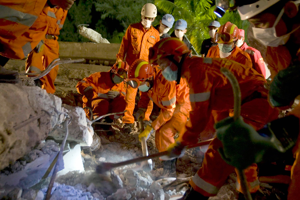 haiti_sixdayslater_008A Brazilian and Chinese search and rescue team searches through the rubble of the headquarters of the United Nation's mission in Haiti in Port au Prince January 15, 2010. (REUTERS/Logan Abassi/UN Photo/Handout)