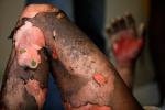 haiti_41Skin peels away from a badly injured victim as they wait for medical assistance after an earthquake in Port-au-Prince January 13, 2010. (REUTERS/Eduardo Munoz)
