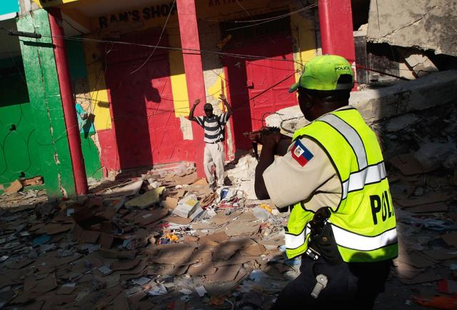 haiti_sixdayslater_006Looters fight for goods outside a grocery store on January 17, 2010 in Port-au-Prince, five days after a massive earthquake devastated Haiti's infrastructure and killed tens of thousands of people. (JUAN BARRETO/AFP/Getty Images)