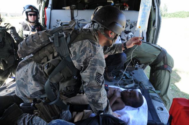 haiti_sixdayslater_002A man is rescued by members of U.S., Spanish and Taiwanese rescue teams in Port-au-Prince, Haiti, January 17, 2010. (REUTERS/Marco Dormino/MINUSTAH/Handout)