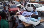 Looters steal a bag of another looter who lies dead, shot by the police on January 17, 2010 near the Hypolite Market in Port-au-Prince. (Olivier Laban Mattei/AFP/Getty Images)