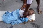 haiti_13People walk by a body pulled out from the rubbles of a building that collapsed after the earthquake that rocked Port au Prince on January 12. Photo Marco Dormino/ The United Nations