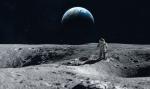 sci-fi_153Abstract photo art with astronaut on the Moon surface against Earth on the background, Exploring space and other planets.