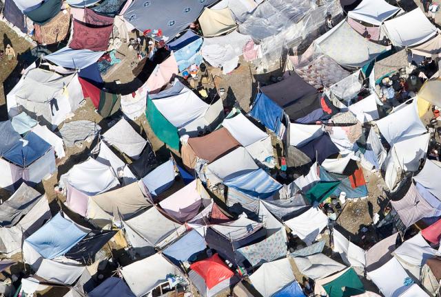 haiti_sixdayslater_017A temporary camp for homeless Haitians is seen from a Canadian Forces helicopter fly-over in Port-au-Prince on Sunday Jan. 17, 2010. (AP Photo/Tyler Anderson, Pool)