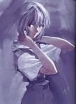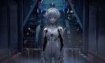 Rei Ayanami (Japanese: 綾波 レイ, Hepburn: Ayanami Rei) is a fictional character from the Neon Genesis Evangelion franchise, created by Gainax studio. In the anime series of the same name, Rei is an introverted girl chosen as the pilot of a giant mecha named Evangelion Unit 00. At the beginning of the series, Rei is an enigmatic figure whose unusual behavior astonishes her peers. As the series progresses, she becomes more involved with the people around her, particularly her classmate and fellow Eva pilot, Shinji Ikari. Rei appears in the franchise's animated feature films and related media, video games, the original net animation Petit Eva: Evangelion@School, the Rebuild of Evangelion films, and the manga adaptation by Yoshiyuki Sadamoto.