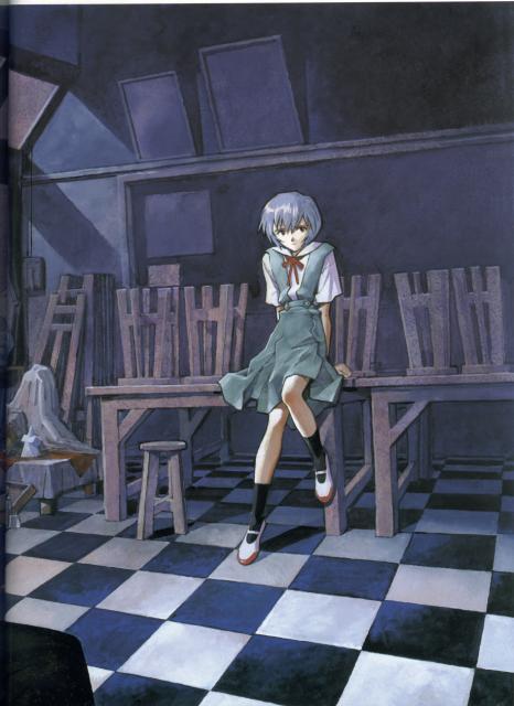 Rei Ayanami (Japanese: 綾波 レイ, Hepburn: Ayanami Rei) is a fictional character from the Neon Genesis Evangelion franchise, created by Gainax studio. In the anime series of the same name, Rei is an introverted girl chosen as the pilot of a giant mecha named Evangelion Unit 00. At the beginning of the series, Rei is an enigmatic figure whose unusual behavior astonishes her peers. As the series progresses, she becomes more involved with the people around her, particularly her classmate and fellow Eva pilot, Shinji Ikari. Rei appears in the franchise's animated feature films and related media, video games, the original net animation Petit Eva: Evangelion@School, the Rebuild of Evangelion films, and the manga adaptation by Yoshiyuki Sadamoto.
