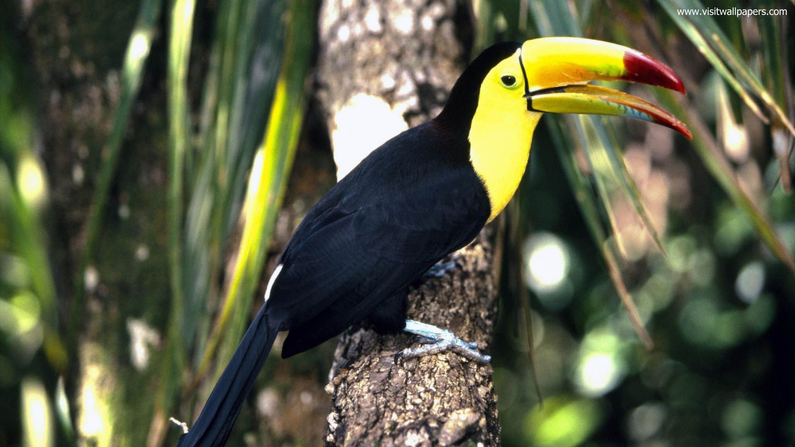 Rainbow toucan saw lunch on the tree.