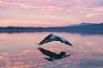 Birds_322Pelican flying over water in sunrise, Pelican in sunrise colors flying over a lake