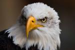 Birds_376CLOSE UP, PORTRAIT: The staring gaze of a bald eagle with striking yellow eyes and hooked beak. Amazing experience of getting up close and personal with a majestic wild bird of prey at falconry centre