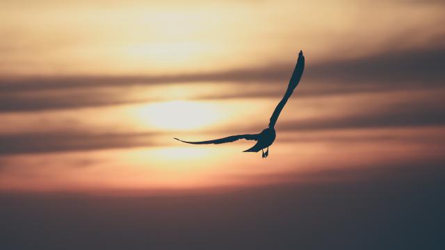 Birds_379Vintage toned silhouette gull on sunset background