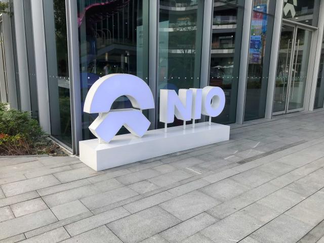 Cars_345September 9, 2019 San Jose / CA / USA - NIO sign at their headquarters in Silicon Valley; Nio is a Chinese automobile manufacturer specializing in designing and developing electric autonomous vehicles