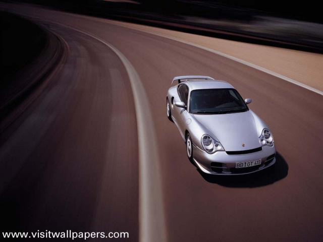 Cars_329A fast silver sports car speeding down the road. Slight motion blur.