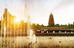 The Musical Fountain at the big wild goose pagoda in southern Xian, Shaanxi province, China.