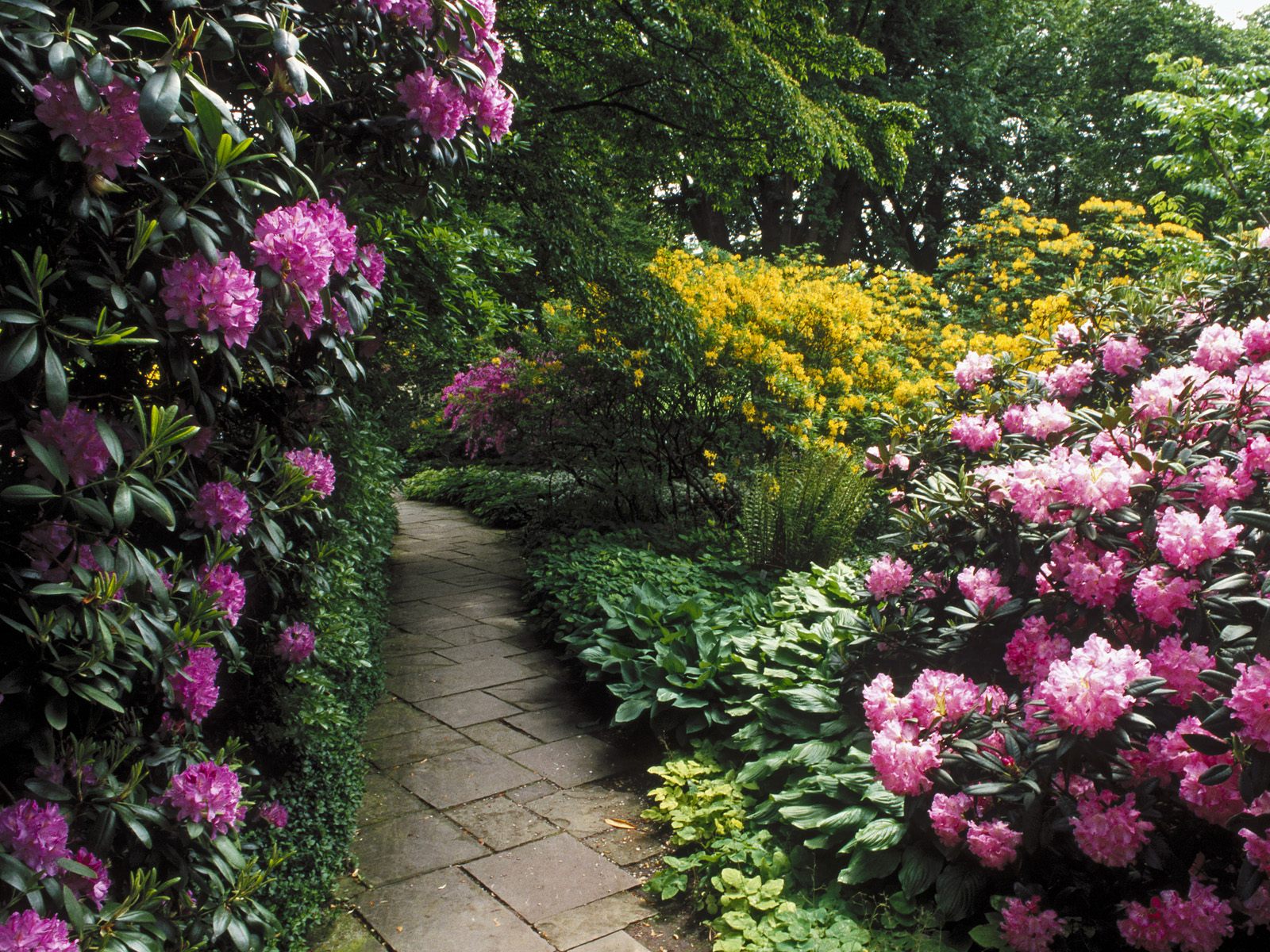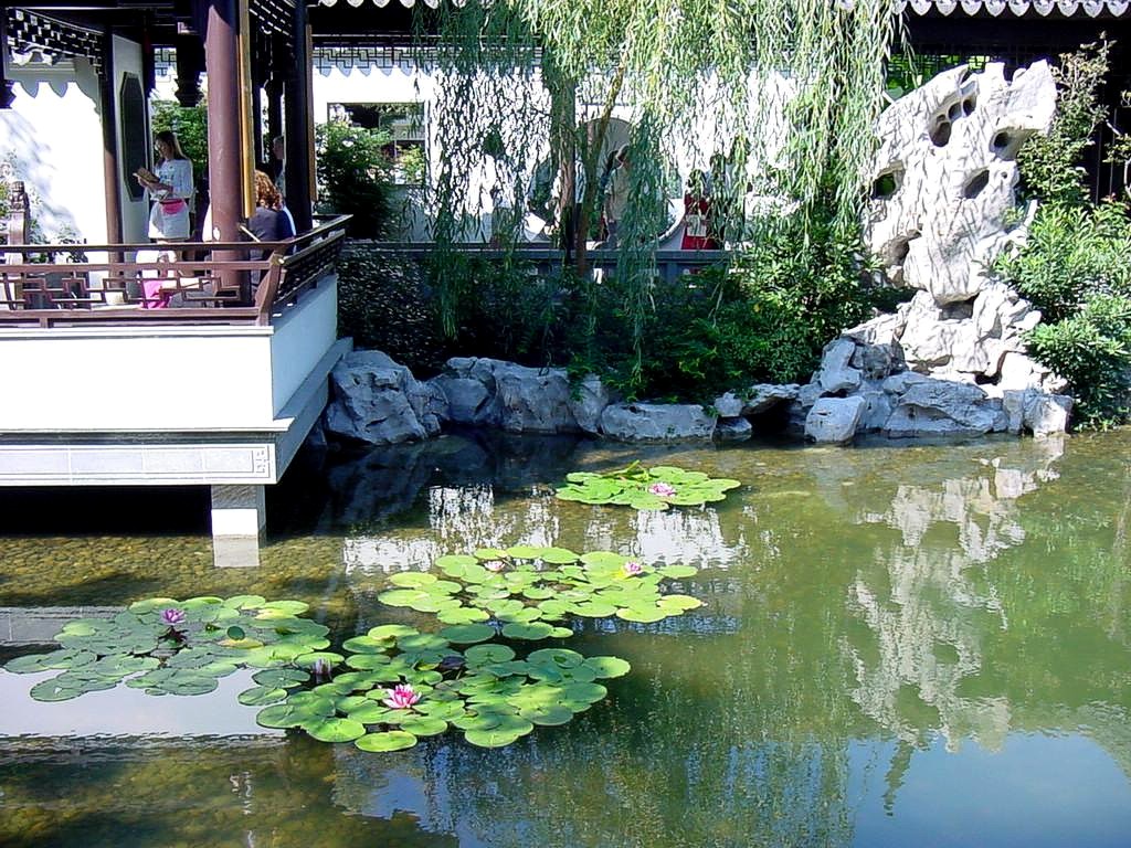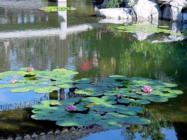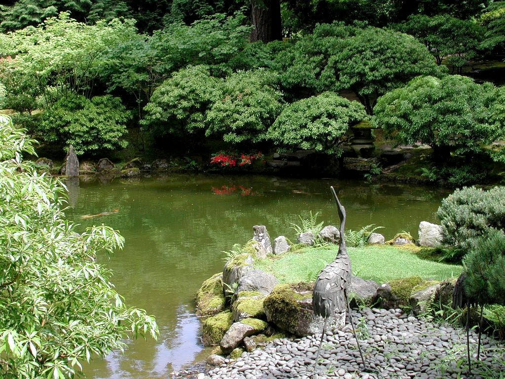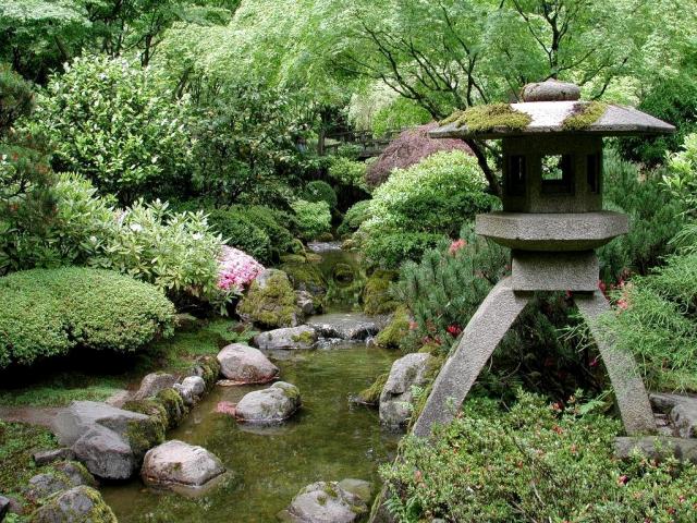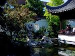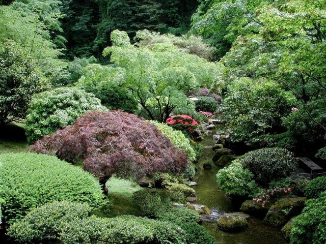 Japanese garden bright autumn colors. Lithia Park, Ashland, Oregon
