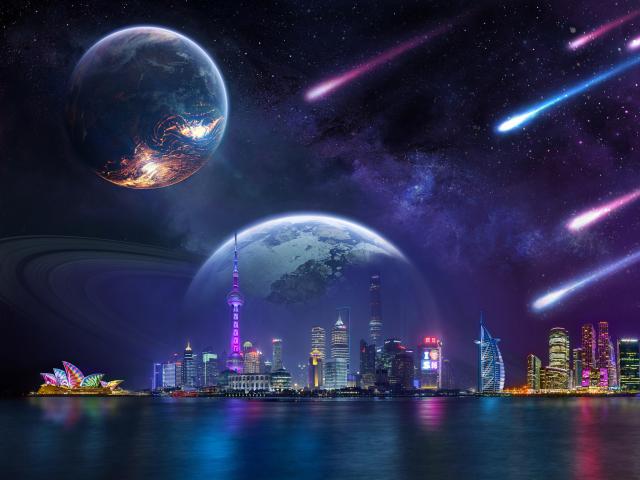 3D rendered alien planets and spaceships- Wallpaper