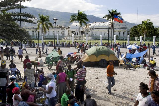 In this handout image provided by the United Nations, Haitians set up impromtu tent cities thorough the capital after an earthquake measuring 7.0 rocked the Haitian capital just before 5 pm yesterday, on January 13, 2010 in Port-au-Prince, Haiti. Much of Port-au-Prince was reduced to rubble by the quake on January 12, but the airport was operational, opening the way for international relief aid to be ferried in by air as well as by sea. (Logan Abassi/MINUSTAH via Getty Images)