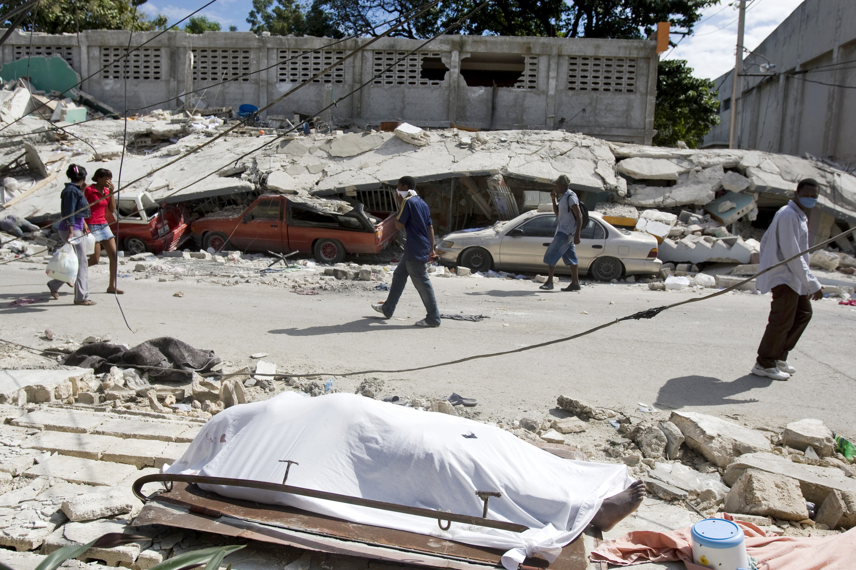 haiti_13People walk by a body pulled out from the rubbles of a building that collapsed after the earthquake that rocked Port au Prince on January 12. Photo Marco Dormino/ The United Nations