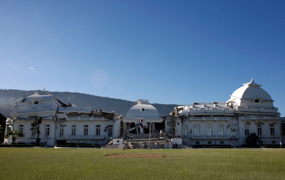 haiti_11The Haitian National Palace shows heavy damages after the earthquake that rocked Port au Prince on January 12. Photo Marco Dormino/ The United Nations