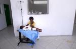 A boy lies injured in a makeshift hospital after the earthquake in Port-au-Prince January 17, 2010. (REUTERS/Carlos Barria)