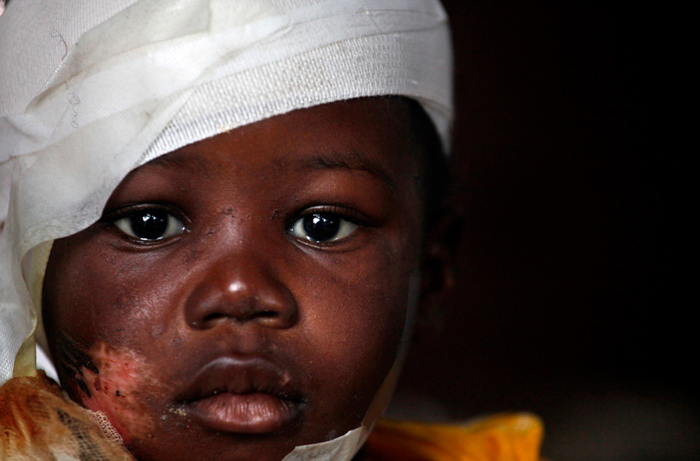 haiti_41Skin peels away from a badly injured victim as they wait for medical assistance after an earthquake in Port-au-Prince January 13, 2010. (REUTERS/Eduardo Munoz)