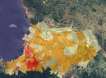 haiti_sixdayslater_052A satellite image map of Port-au-Prince represents a building damage assessment with red for obvious/widespread damage, orange for evident but sporadic damage, and light yellow for scarce or non-visible damage.