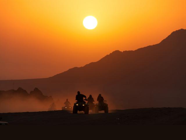 motorcycle_02Man riding a motorcycle in the sunset ATV A vehicle that can travel on any terrain and can walk freely on terrain that is difficult for ordinary vehicles to maneuver. The vehicle is simple and practical, has good off-road.An all-terrain vehicle (AT