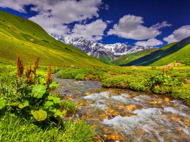 river_214 Fantastic scenery is a river in the mountains. Upper Svaneti, Georgia, Europe. Caucasus. Date: 3/10/2018 Fantastic scenery is a river in the mountains. Upper Svaneti, Georgia, Europe. Caucasus.