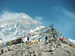 mountains_329 View of Mt. Everest Lhotse and Nuptse with prayer flags and tourists from Kala Patthar view point near Gorak Shep and Everest base camp, Khumbu valley, Sagarmatha national park, Nepal Date: 7/25/2020 View of Mt. Everest Lhotse and Nuptse with prayer flags and tourists from Kala Patthar view point near Gorak Shep and Everest base camp, Khumbu valley, Sagarmatha national park, Nepal