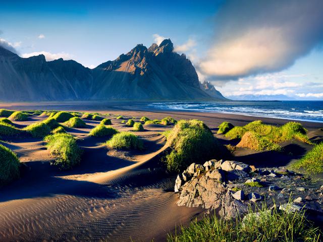mountains_319 Scenic image of famous Stokksnes cape and Vestrahorn Mountain in Iceland. Iconic location for landscape photographers. Amazing nature of World. Date: 1/10/2020 Scenic image of famous Stokksnes cape and Vestrahorn Mountain in Iceland. Iconic location for landscape photographers. Amazing nature of World.
